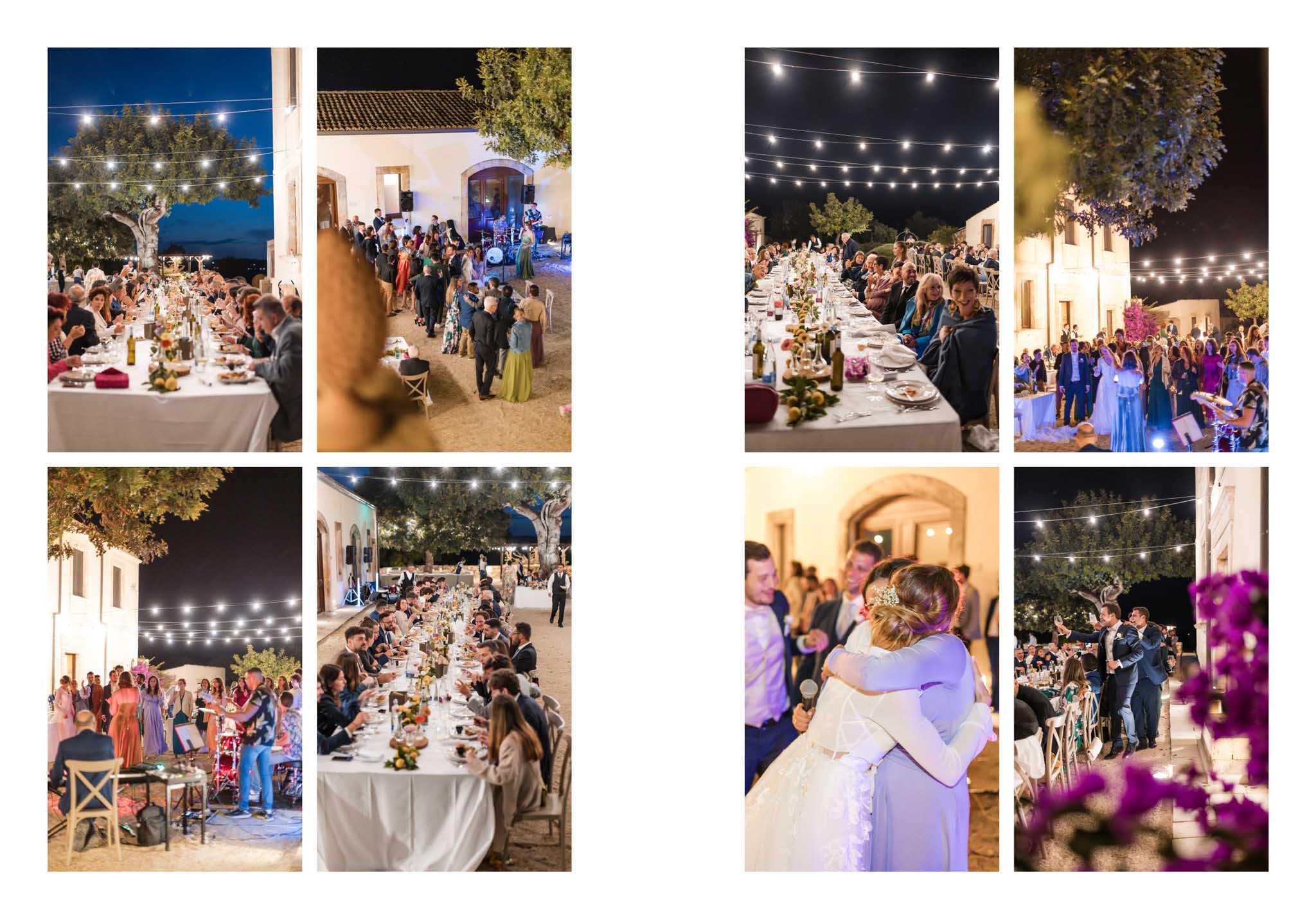 The celebration continued at a traditional Sicilian agriturismo, where long tables, local flavors, and a convivial atmosphere welcomed family and friends. As the sun set over the countryside, the evening transformed into a warm and joyful gathering—filled with laughter, music, and genuine moments shared under the open sky.